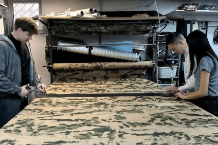 В марте этого года студенты 2 курса факультета ГМУ начали сотрудничество с благотворительным фондом «Золотые руки Ангела». Здесь делают носилки, пятиточечники, специальные антитепловизорные пончо для того, чтобы наших бойцов было труднее засечь в темноте с помощью вражеских беспилотников.