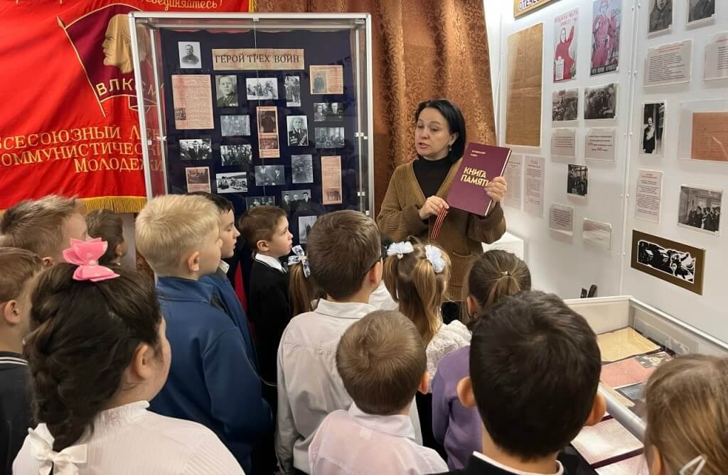 Школьники познакомились с агитационными плакатами начала войны, фронтовыми письмами земляков, Книгой Памяти, Героями Советского Союза, освобождавшими наш район от немецко-фашистских захватчиков и их подвигами. Дети узнали, что в годы войны посылки на фронт, которые согревали, вливали силы в бойцов, вдохновляли на новые подвиги, собирали всем селом.