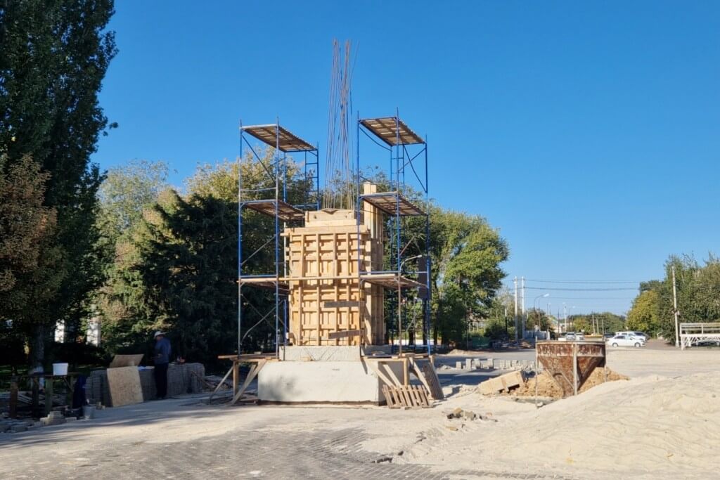 Так же продолжается возведение стелы «Рубеж Сталинградской доблести». Завершены фундаментные работы, глубина котлована под фундамент составила более двух метров. Смонтированы четыре сваи, выше нулевой отметки по уровню площади заливается монолитный остов стелы.