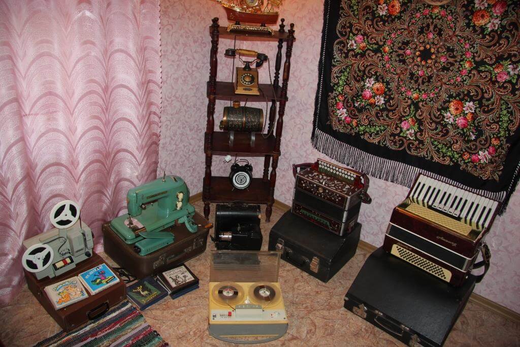 Большая часть экспонатов – это предметы советской эпохи. Гармонь «Танго» приехала к Рафаэлю из города Мирный. Здесь же – целая коллекция швейных машин, старенький телевизор и телефон, который у современных детей скорее вызовет недоумение. Им сейчас невдомек, что когда-то, чтобы набрать номер друга, нужно было упорно крутить тугой диск с цифрами, да и номер этот хранился не в памяти телефона, а в голове или, в крайнем случае, в записной книжке. Здесь можно увидеть предметы, знакомые каждому, кто рос в СССР: проигрыватель с виниловыми пластинками, самовар, чеканные картины, керосиновая лампа, чугунный утюг и множество других артефактов. Каждый экспонат – это не просто предмет, а целая история, вызывающая теплые воспоминания и ностальгию.