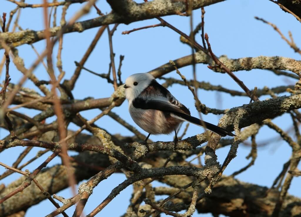В Октябрьском районе длиннохвостые синицы – немногочисленный гнездящийся и зимующий вид. Заметить летом их довольно сложно, но осенью, когда деревья сбрасывают листву, они становятся заметнее. Большую часть года птички летают в небольших стайках и выглядит всё это так, будто ангельские воробушки перелетают с места на место, весело перекликаясь друг с другом. Ополовники довольно ловко лазят по веткам деревьев в поисках пищи, часто висят вниз головой, осматривая кору веточек снизу. Поймать в объектив птицу очень сложно – настолько они подвижны. И только я успела сделать несколько кадров, как они снова упорхнули куда-то и больше уже не показывались.