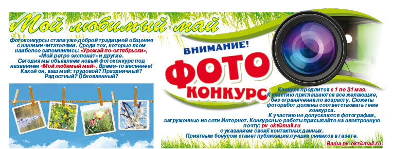 К участию не допускаются фотографии, загруженные из сети Интернет. Конкурсные работы присылайте на электронную почту: pv_okt@mail.ru
