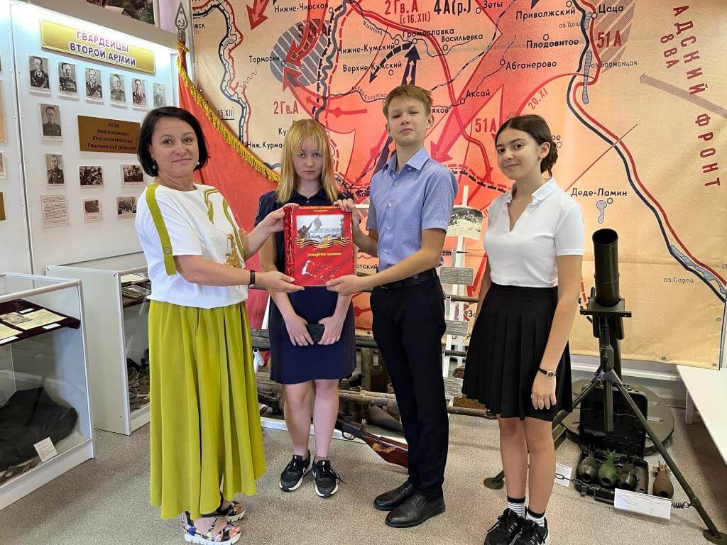 Событием, заслуживающим внимания, отмечена эта дата в историко-краеведческом музее. 17 июля, в день начала Сталинградской битвы учащимися Октябрьской средней школы №1 в фонды музея передан альбом – главный атрибут акции «Эстафета Памяти», которая стартовала в декабре 2022 года в преддверии 80летней годовщины Победы в Сталинградской битве.