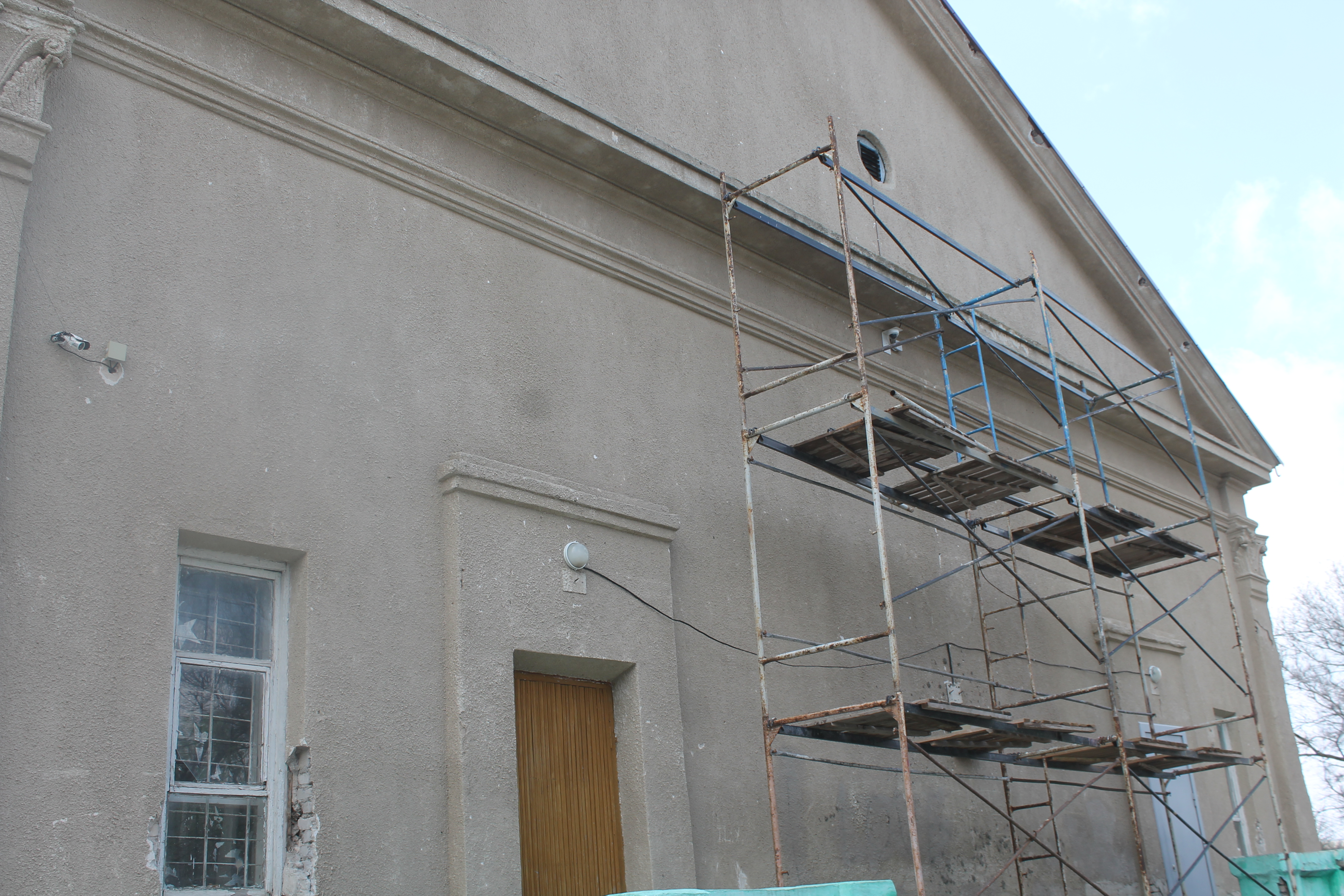 Районный Дом культуры весь в строительных лесах: здесь продолжается капитальный ремонт.