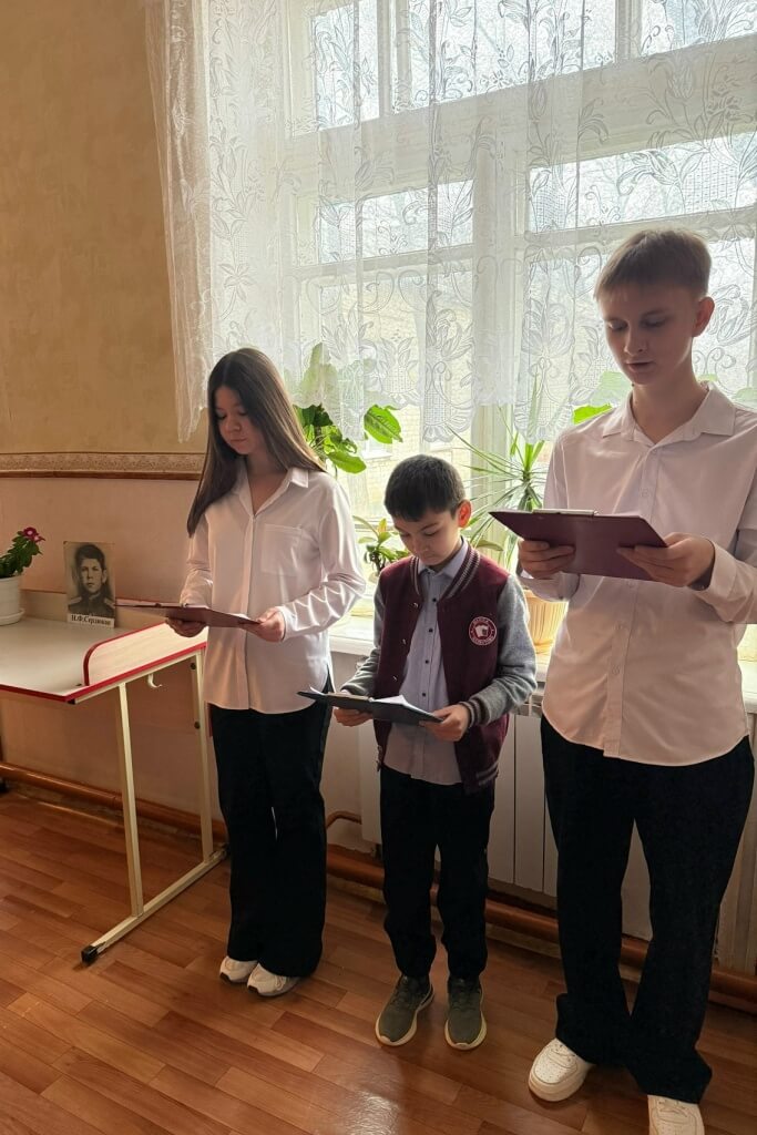 В школе прошла торжественная линейка, посвященная 83й годовщине героического подвига Н.Ф. Сердюкова. Организаторами данного мероприятия являются наставники Орлят России и активные участники «Движение Первых»: Ксения Баннова, Дмитрий Нидзий и юный Орленок России Денис Нидзий.