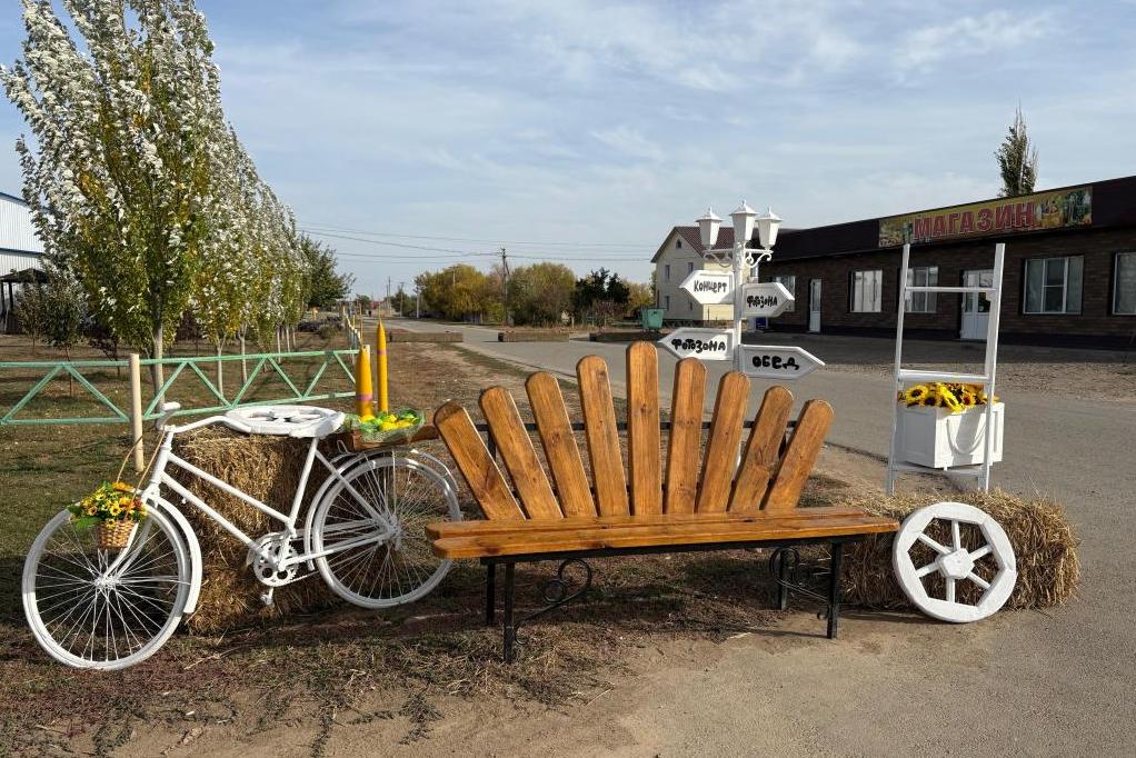 На площади у сцены расположились фотозона и прочие украшения праздника. Часы, скамья, фонарь и даже «завалинка на сеновале» – все это не просто украшало место праздничного сбора, но и создавало особую, сельскую, осеннюю, радостную атмосферу. Стилизованные указатели на фонарном столбе задавали направления для желающих запечатлеть момент на фото, насладиться творчеством местных артистов или же отведать праздничных блюд с земляками за общим столом.