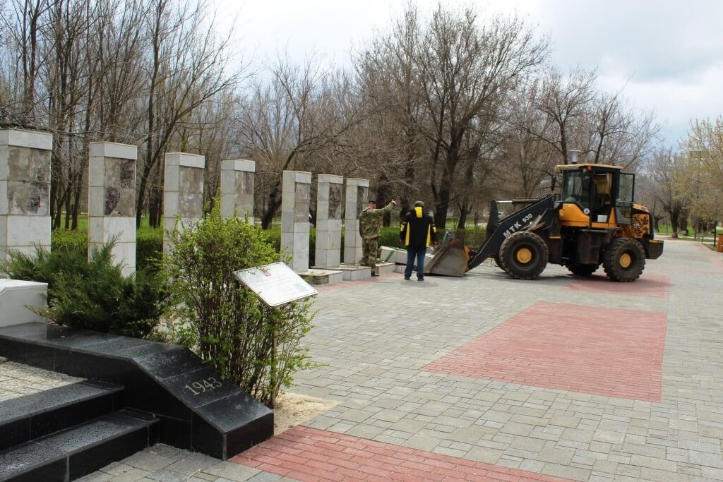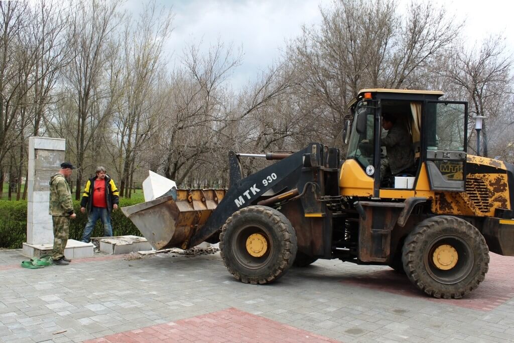 В рамках продолжения масштабных работ по благоустройству общественной территории центрального парка и центральной площади районного центра началась реконструкция мемориальной зоны – Аллеи Памяти. Старые бетонные стелы, облицованные мрамором, будут демонтированы. На их месте появятся новые монументы из гранитного массива.