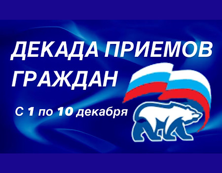 Первый день декады приемов «Единой России» назначен на 1 декабря. 2 декабря будет организован день приёмов граждан по вопросам ЖКХ, 3 декабря – по вопросам социальной поддержки, 4 декабря – по вопросам образования, 5 декабря – по вопросам защиты прав трудящихся, 8 декабря – по вопросам здравоохранения, 9 декабря – по вопросам материнства и детства, 10 декабря – по вопросам бизнеса и предпринимательства.