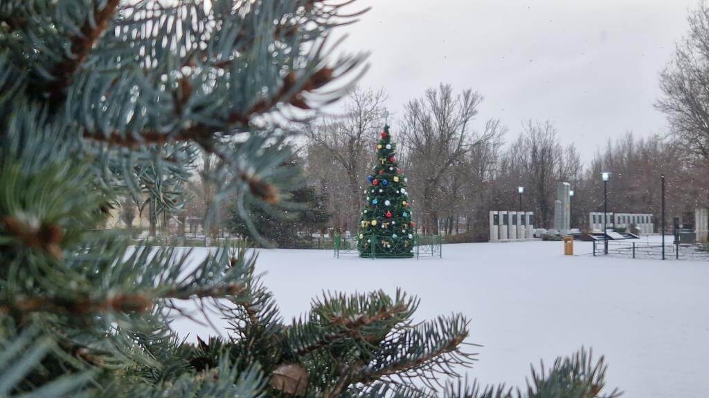 А на центральной площади поселка Октябрьский распушилась, засияла цветными огнями...подробнее