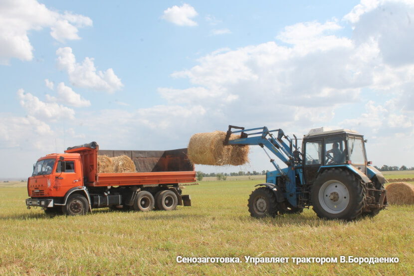 Параллельно КФХ ведет уборку кормовых трав. Первый укос суданки уже сделан, на подходе второй. Кормодобывающая бригада перевозит с поля рулоны сена. Виталий Бородаенко, ювелирно владея трактором, в четыре приема заполняет КамАЗ, «накалывая» по два рулона. «Сена много: для суданки урожайный год, – отмечает механизатор. – Хватит для подсобных хозяйств и работников наших, и пайщиков». На сенозаготовке заняты 8 человек, и работы хватает всем. А в целом костяк коллектива – 25 человек, четверо из них работают с момента создания сельхозпредприятия.