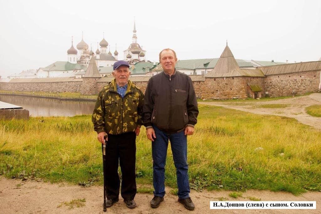 Из этого общения и узнали Донцовы, как жилось родным после высылки. Сосланная семья какое-то время жила на крошечном острове в Белом море: степняки вынужденно и неожиданно для себя стали поморами. Небольшой участок суши, где приходилось выживать на северных ветрах и в низких температурах. Прибыли туда в ноябре. Копали землянки. Холодно, голодно. Выжили не все дети. Да и Алексей Семенович прожил недолго: жизнь была трудной, как и условия работы в артели по добыче морских водорослей, куда он поступил после разрешенного переезда на остров Жижгинский. И хотя семья все это время числилась в списках ссыльных, на войну одного из его сыновей взяли. Об этом тоже узнает семья Донцовых из Октябрьского, получив газету «У Белого моря», где ко Дню Победы был очерк о Николае Алексеевиче Донцове, живущим на Соловках. Вот что о нем писали: «На Севере Николай Донцов оказался в семилетнем возрасте. Отца, как кулака, выслали из Сталинградской области. С тех пор Беломорье стало для Николая Донцова родным краем. Но главное испытание ждало его впереди. В 1941 грянула война. 6 января 1943 года ему пришла повестка, в разгар жестоких боев за Сталинград». Так судьба сына сосланного царицинского крестьянина чуть было снова не соприкоснулась с родными местами. Был рядом – в Ростове и Батайске. Освобождал Венгрию, был ранен. Победу встретил в Австрии. После возвращения служил старшим техником на Жижгинском маяке – одном из главных маяков в Белом море.
