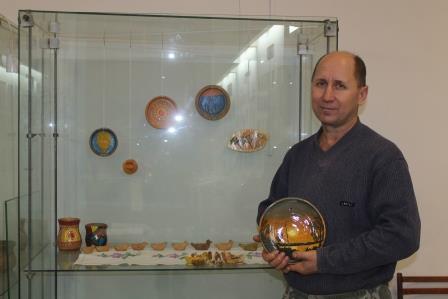 Не один год прошел от мечты до персональной выставки под названием «Жутовская керамика», которая в эти дни проходит в районном музее и где мы встретились с мастером дел гончарных. Если быть точнее, пристально этим делом Алексей занимается третий год. Упорно, даже, можно сказать, настырно все это время идет к результату. И он налицо: вниманию посетителей музея представлено несколько десятков изделий. Чем выставка запомнится тем, кто ее посмотрит? Несомненно, это будут настенные панно с пейзажами местной природы. К примеру, как вам такое решение: хутор ИльменьСуворовский в вечернее время или речной мотив «Утро на Аксае»? Интерес вызовут и расписные детские свистульки в виде различных представителей фауны, а также сосуды под сухоцветы, другие изделия обихода. Внимание привлекут чашки для чая, украшенные орнаментом, который, кстати, Алексей выполняет сам, и это весьма удивительно: ведь ранее особых художественных способностей он за собой не замечал. Но, в первую очередь, не художественным вкусом автор объясняет это явление. Главный мотив и двигатель, по его словам, – «любовь к истории и Родине». Простота и лаконичность в главной цели: заявить не о себе лично, а создать чтото особенное и самобытное, прославив тем самым родной край. Ну, что же, ведь и такие традиционные промыслы, как павлопосадские платки, гжель и хохлома тоже с чегото начинались.