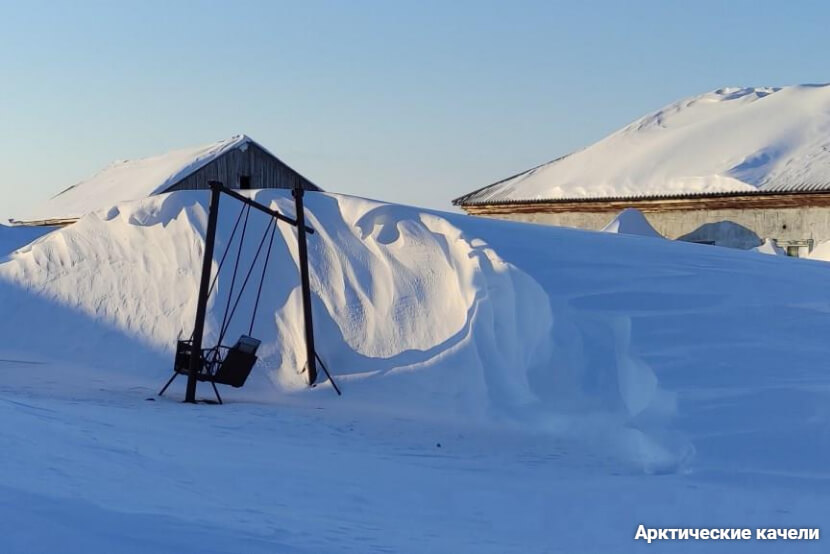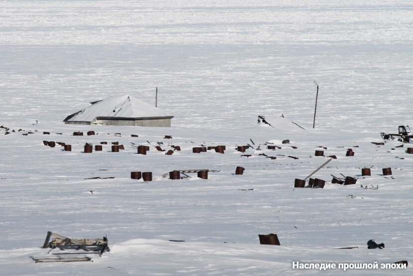 И сейчас на мысе стоит памятный столб Семену Челюскину, который символизирует оконечность материка, его открытие. Но в настоящее время он выглядит как объект, на который время наложило свой не лучший отпечаток. На мысе вообще много «картинок» из прошлой эпохи. Замер на вечном приколе баркас. И даже, когда растает лед, он уже не расправит паруса. Но он добавляет определенный колорит этому месту. А некоторые артобъекты еще могут и послужить, если их чуть отреставрировать. Вот совершенно неожиданное на первый взгляд явление: качели, установленные, судя по внешнему виду, тоже очень давно. Оказалось, что рядом когдато был полноценно функционирующий детский сад. Ведь в некоторые периоды население мыса доходило до 300 человек. Был врач, детский сад, почта, аэропорт, и раз в неделю самолет летал сюда регулярно. А в радиусе 50 км было три метеостанции: на оз.Таймыр, на о.Самуила, на Северной Земле через пролив. В общем, жизнь кипела. В конце 80х навезли огромное количество материалов для строительства. Но в 90е все остановилось. И очередным памятником беспечности по отношению к экологии стоит множество бочек изпод ГСМ, оставшихся от далеких экспедиций. Распространение их по территории мыса, по словам Елены, просто невероятное. Это понятно даже при высоте снега более чем в полтора метра. Но нынешние экспедиции расположение их структурировали и «назначили» ориентирами для места нахождения деревянных настиловдорожек, а также ограничителями территории, наподобие вешек. Кстати, одним из заданий отряда на мысе было определение мест наибольшего скопления мусора и отметки их координат для того, чтобы организаторы и волонтеры проекта «Чистая Арктика» смогли потом этот мусор убрать. Ребята отметили несколько таких точек и информацию передали в центр.