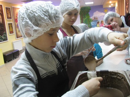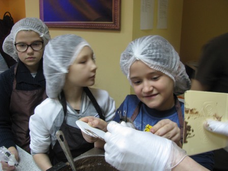 Однако самое интересное ожидало их впереди: организаторы приготовили для них мастер-классы по трем направлениям – изготовление фигурки из шоколада, собственноручное создание шоколадной плитки и декорирование печенья. Во время интерактивных занятий ребятишки услышали древние легенды, сказки, узнали секреты мастеров о шоколаде, познакомились с техникой тамперирования и, самое главное, создали собственными руками настоящие сладкие шедевры из бельгийского шоколада. Кроме того «Шоколадушка» подготовила дегустационный вечер, в процессе которого участники экскурсии узнали историю шоколада разных народов мира, стран и эпох, а заодно и «попробовали» ее на вкус.