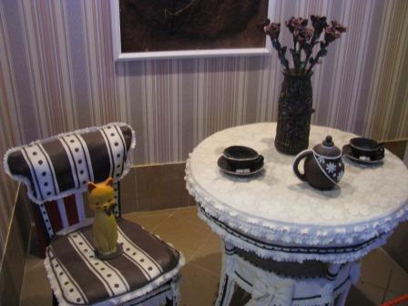Глаза октябрьских гостей музея шоколада буквально «разбежались» - уже от самого входа воображение поражали композиции и картины, выполненные целиком из этого удивительного лакомства, которое любят все без исключения. Здесь бросается в глаза и портрет создателя шоколада «Нестле» и даже целый чайный уголок, в котором не только посуда и столовые приборы, но и сама мебель сделаны из него.