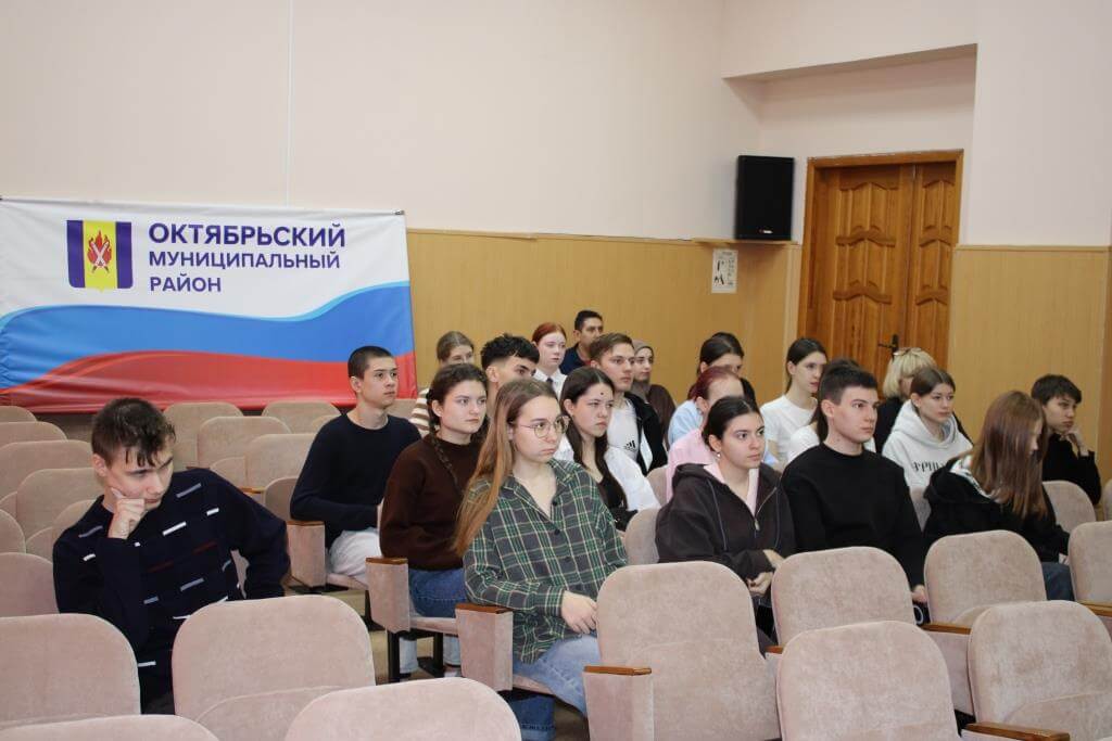 13 февраля в зале заседаний администрации Октябрьского муниципального района прошла встреча одиннадцатиклассников с представителем пограничного Управления ФСБ России по Волгоградской области. Цель встречи была важной, поскольку информация, прозвучавшая в ее ходе, могла повлиять на выбор дальнейшего жизненного пути сегодняшних школьников.