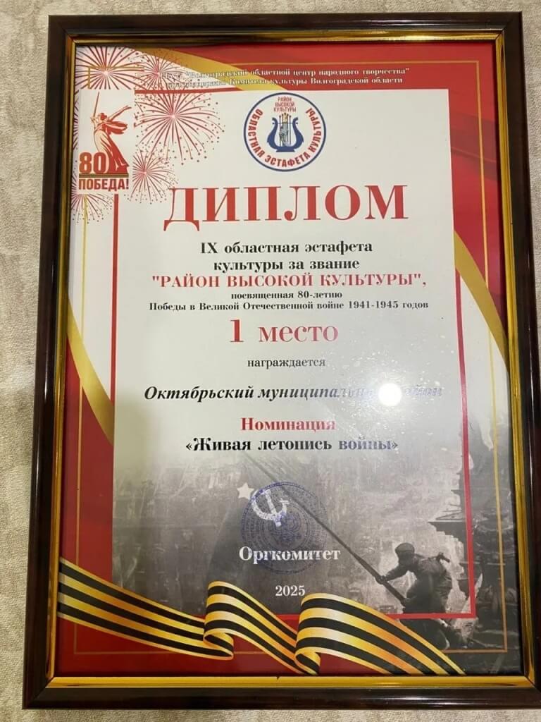 На заключительном концерте собрались муниципальные районы и городские округа, принявшие участие в эстафете. Октябрьский муниципальный район занял 1 место в номинации "Живая летопись войны" и был отмечен дипломом.