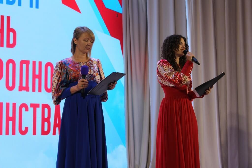 В фойе гостей и участников праздника встречала выставка мастеров декоративно-прикладного искусства и кулинарных изделий национальной кухни "Дом дружбы", а в зрительном зале развернулся фестивальный концерт "Широка страна моя родная".