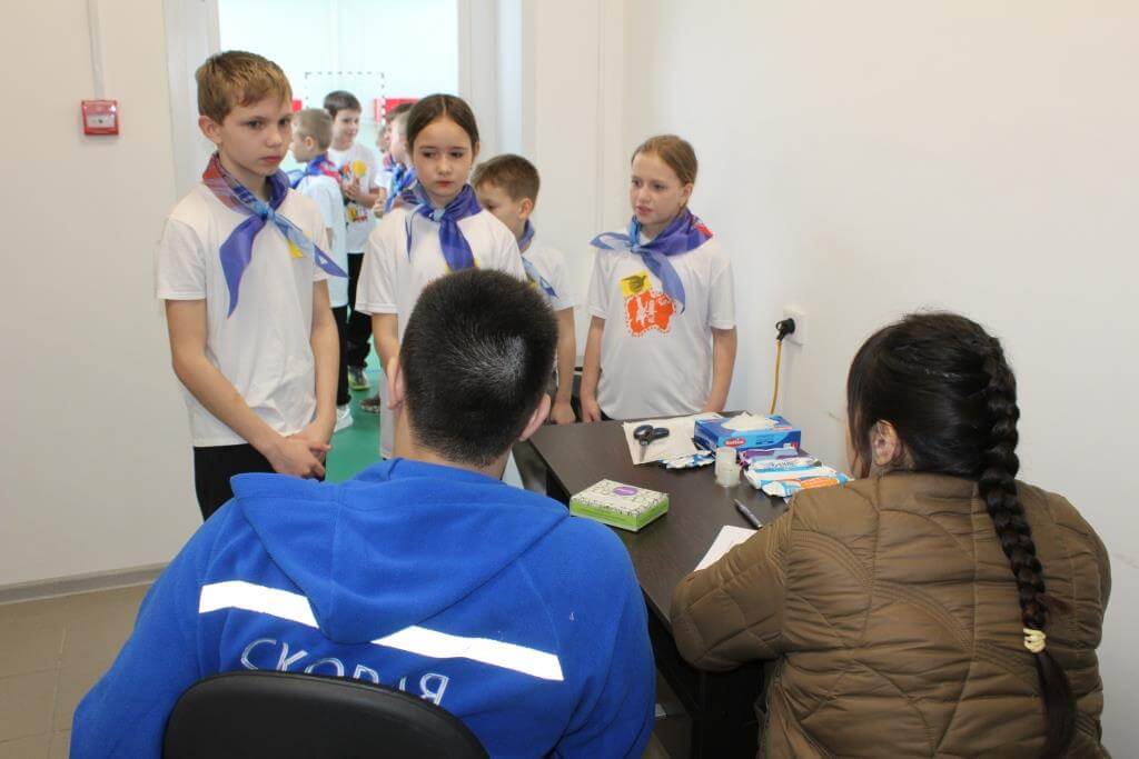Не менее интересным был для ребят этап первой помощи. Конечно, было бы еще интереснее, если бы школьникам дали возможность по-настоящему бинтовать руки-ноги и лечить раны, но и теория не менее увлекательна. Живая фантазия ребят помогала им в красках представить озвученную ситуацию и быстро найти нужный способ оказания доврачебной помощи «пострадавшему». И здесь Ромашкинская школа снова была впереди.