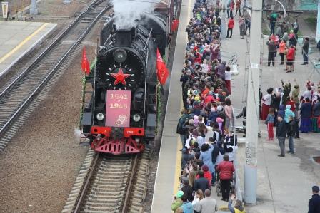 Ретропоезд словно окунул жителей и гостей поселка Октябрьский в атмосферу далеких 40-х годов ХХ века: на импровизированной сцене перед зданием вокзала звучала музыка военных лет, самодеятельные артисты, участники художественной самодеятельности РДК пели и танцевали, перевоплотившись в солдат и медсестричек... После трехчасовой стоянки «Воинский эшелон» отправился дальше в путь по волгоградскому региону, оставив в сердцах детей и взрослых массу ярких, незабываемых впечатлений…