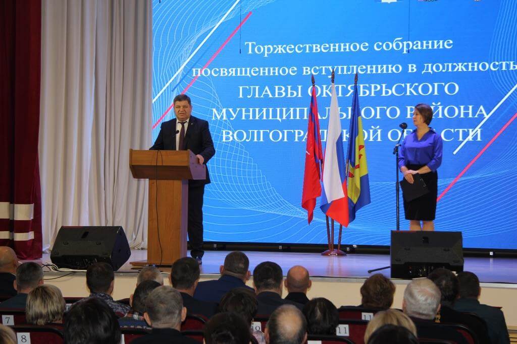 В районном Доме культуры в торжественной обстановке состоялось вступление в должность главы Октябрьского муниципального района А.М. Клыкова. Мероприятие началось с выноса государственного флага Российской Федерации, флагов Волгоградской области и Октябрьского района, прозвучал гимн России.В зале собрались почетные гости – представители руководства региона, главы соседних районов, поселений Октябрьского района, руководители правоохранительных органов, руководители и представители предприятий и общественных организаций, жители района.